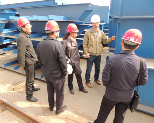 在我公司總工程師石永勝和生產(chǎn)基地經(jīng)理呂瑞軍的陪同下先后參觀了公司生產(chǎn)車(chē)間、涂裝車(chē)間以及構(gòu)件成品區(qū),對(duì)公司整體生產(chǎn)情況進(jìn)行了詳細(xì)了解,并對(duì)我公司的制造工藝給予了大的贊許,隨后在生產(chǎn)基地會(huì)議室召開(kāi)了交流座談會(huì)。